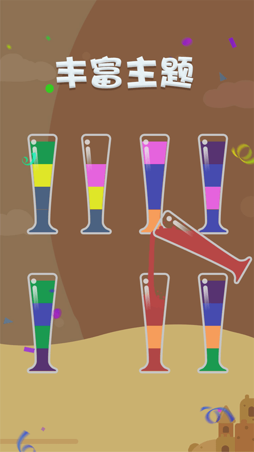 我倒水贼棒是一款有趣且令人上瘾的益智游戏! 尝试将玻璃杯中的有色水分类,直到同一玻璃杯中的所有颜色都是同一种颜色。