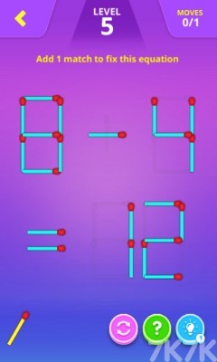 一款有趣的解谜游戏,游戏内有许多火柴组成的谜题,你需要根据要求移动火柴来解开各个谜题,快来挑战一下吧。