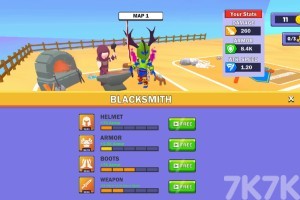游戏内你是一个超级骑士,你需要在竞技场打败所有的敌人并收集它们的灵魂,出售灵魂获取奖励来升级装备技能,然后在竞技场开启割草模式吧。
