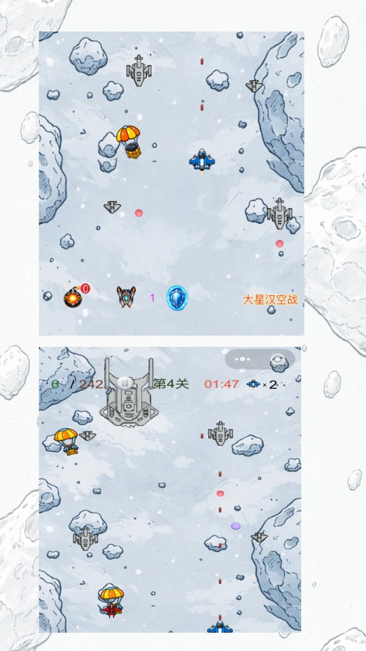 移动自己的飞机,使用机炮等武器消灭敌机