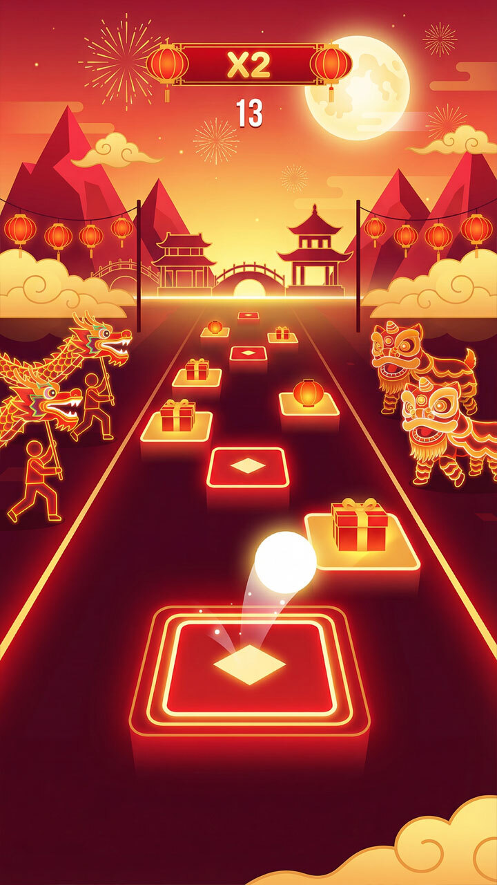 一款音乐节奏跳跃游戏,随着音乐的律动穿梭